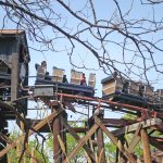 Then, hang on as your train chugs through a series of twisty helixes and curves through the untamed foliage of the Old West at an out-of-control pace.